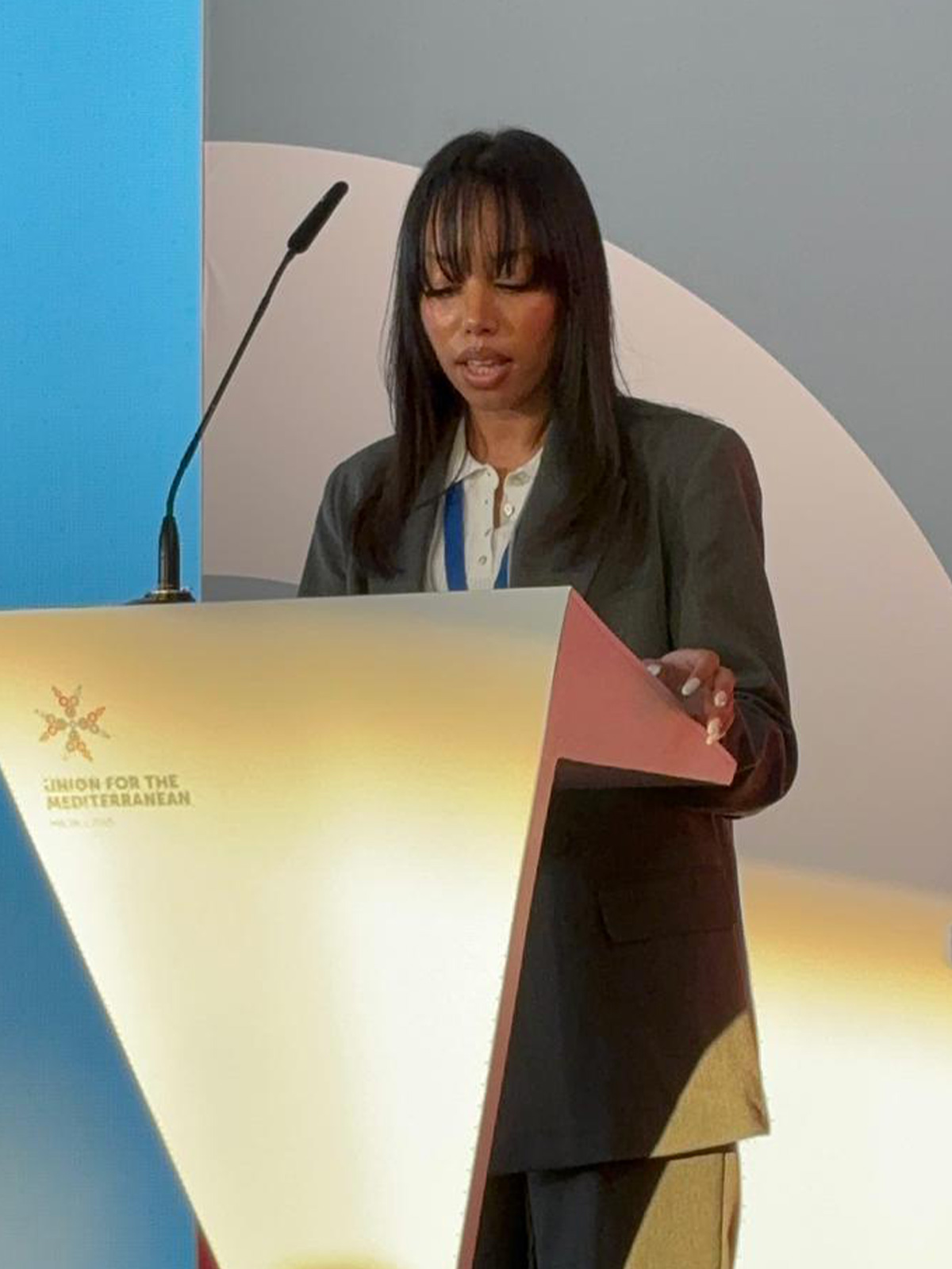 Le point d’orgue de sa participation fut la présentation de la campagne MedNYouth – New Energy Endless Triumph, que Fatima Zahra a portée avec une grande conviction devant un large public d’acteurs euro-méditerranéens.