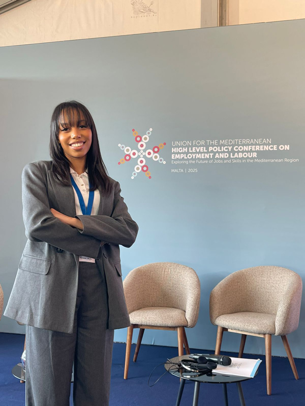 Quelle formidable présence pour Al Jisr et pour la jeunesse marocaine ! C’est avec beaucoup d’enthousiasme que nous saluons la participation remarquable de Fatima Zahra Bakadir, jeune apprentie de notre CFA Green Chip Oujda, à la Conférence de haut niveau de l’Union pour la Méditerranée (UpM) à Malte, le 13 octobre 2025.
